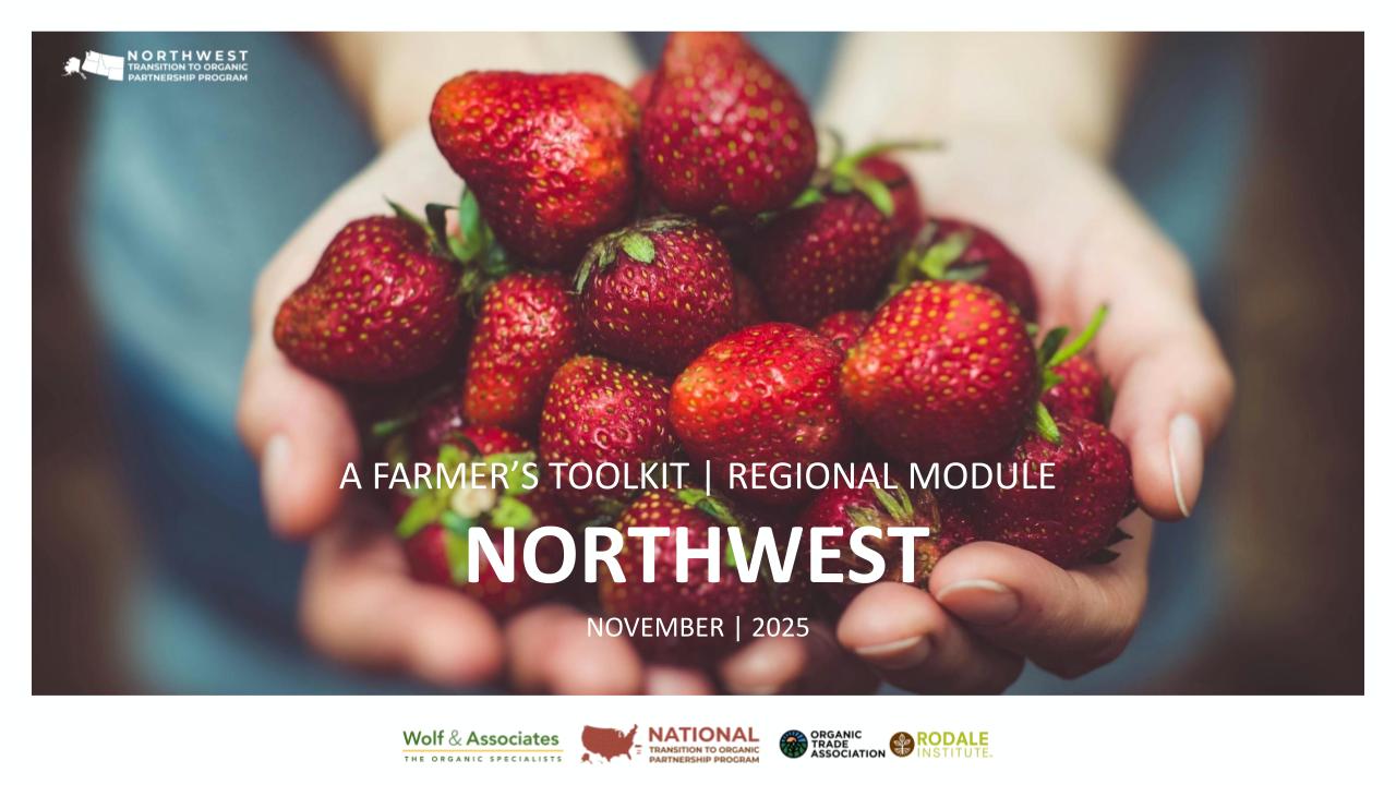 Join us for an in-depth walkthrough of “Advancing Regional Organic Markets: A Farmer’s Toolkit”, a new resource designed to strengthen regional organic economies. This toolkit provides farmers and stakeholders with data, insights, and opportunity analysis to help expand regional production of high-demand organic crops, reduce reliance on imports, and increase economic opportunities for U.S. farmers.… Continue reading Webinar: Advancing Regional Organic Markets A Farmers Toolkit Northwest